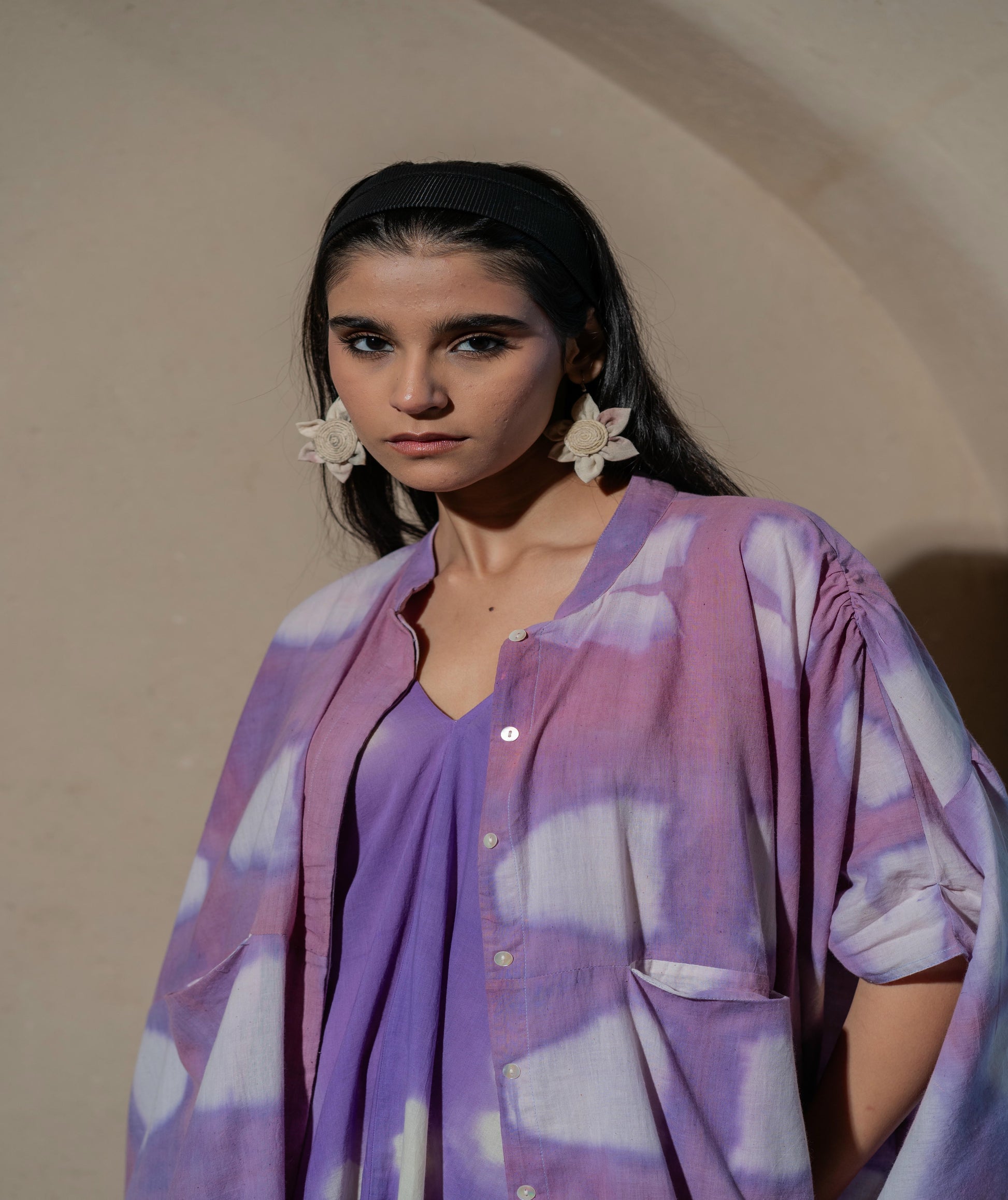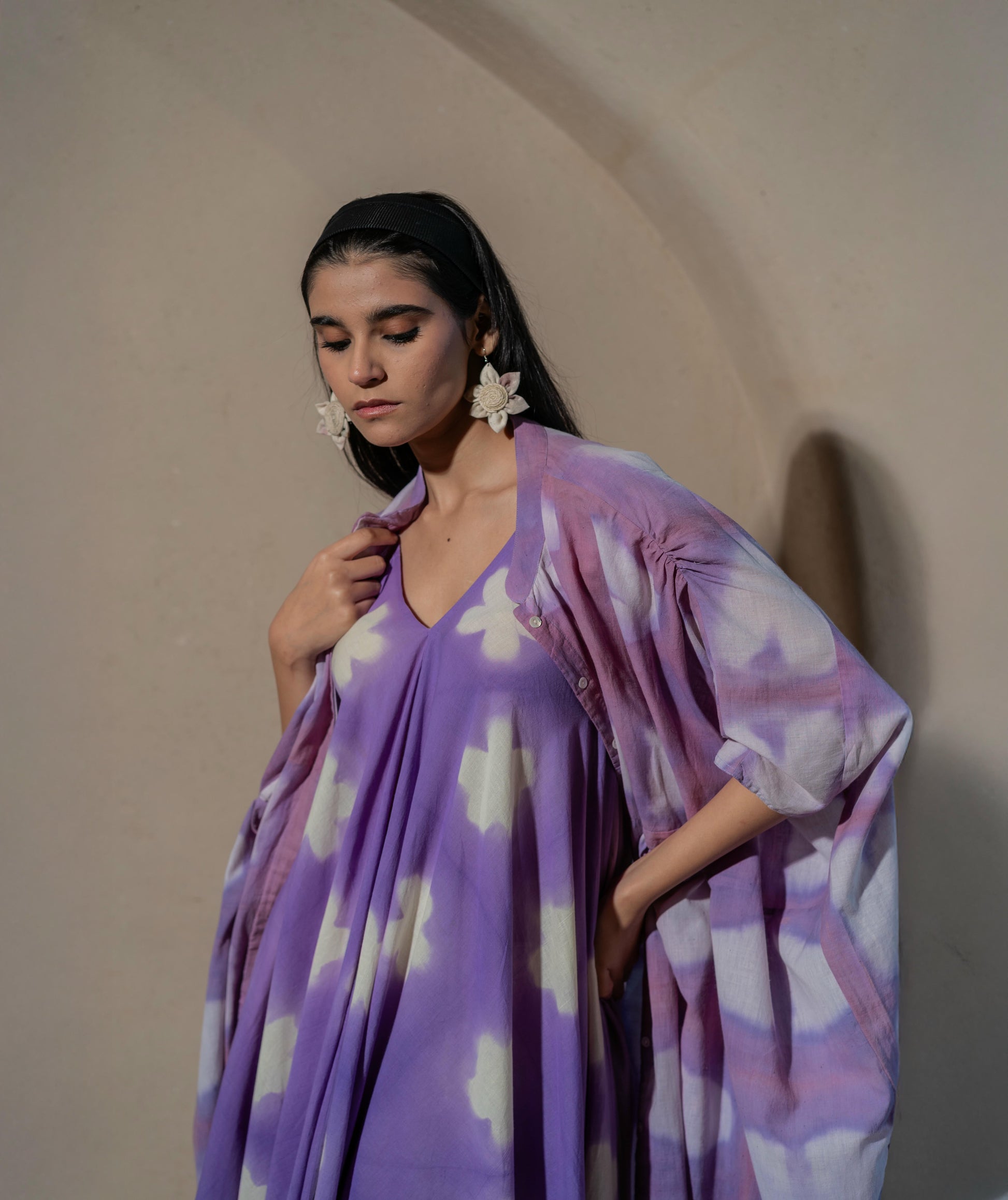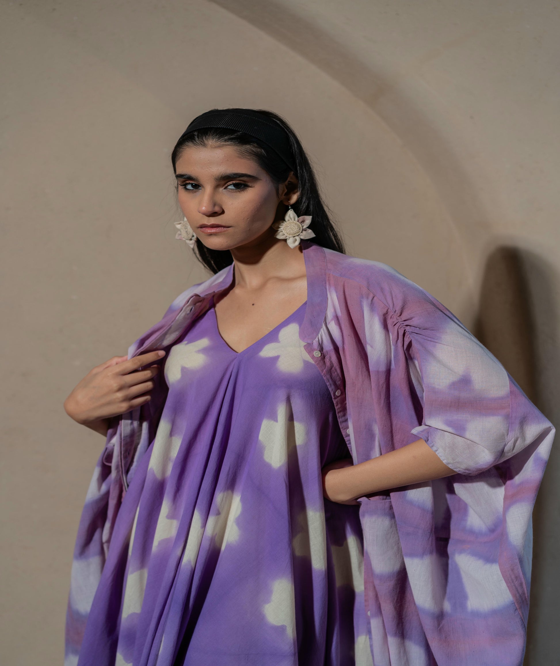 The phool set features symmetric drape dress that creates an instantly flattering silhouette while the included organic cotton overlay adds dimension and styling flexibility.