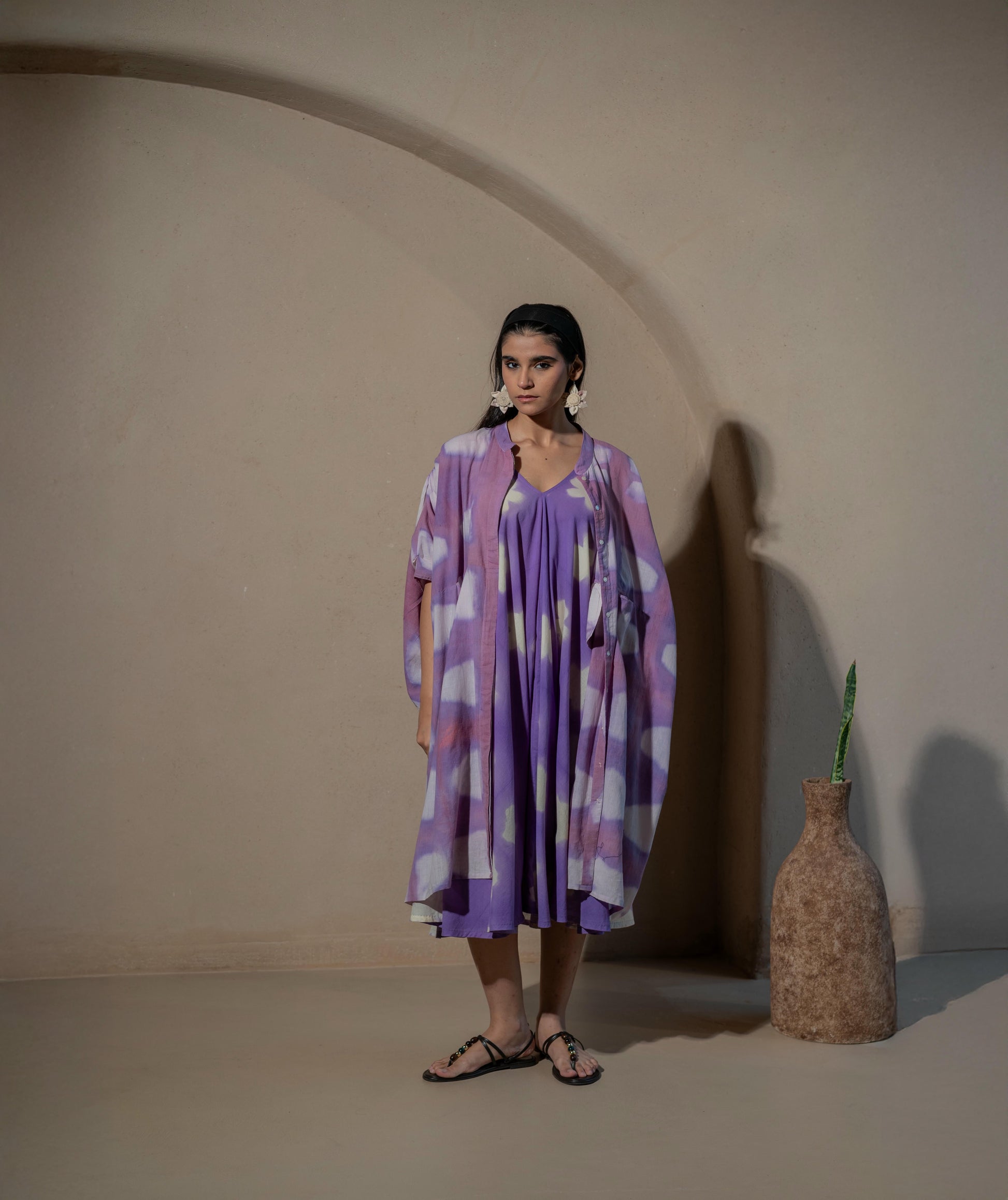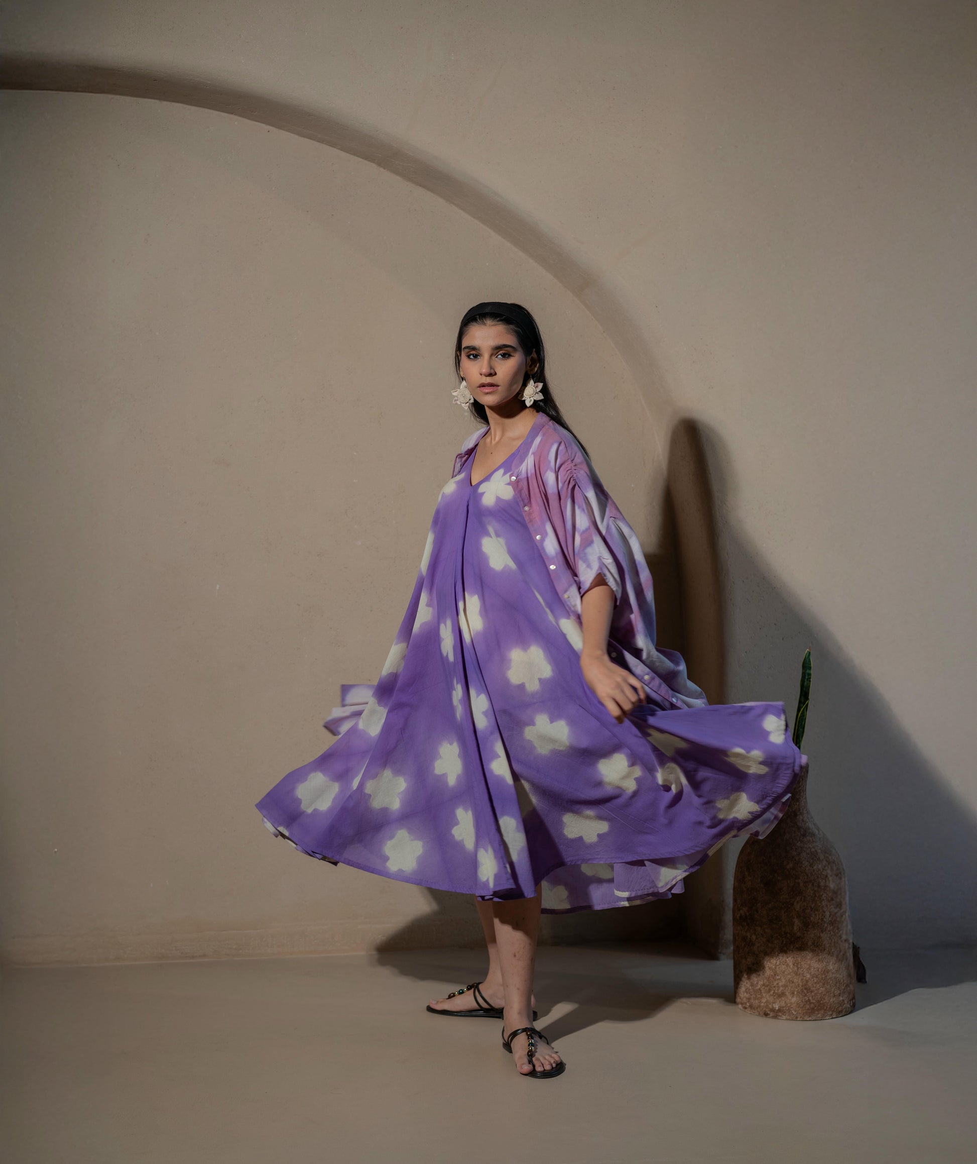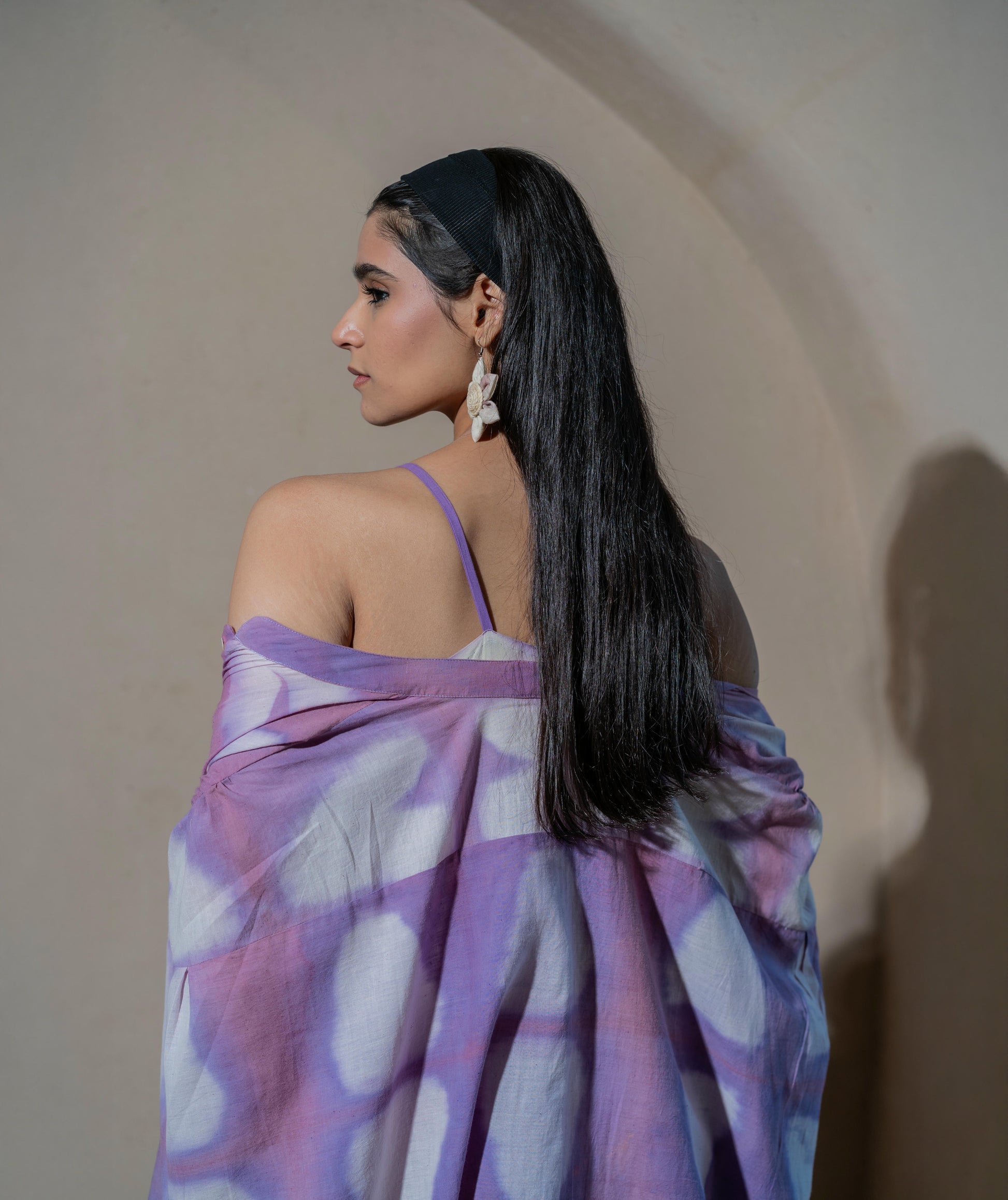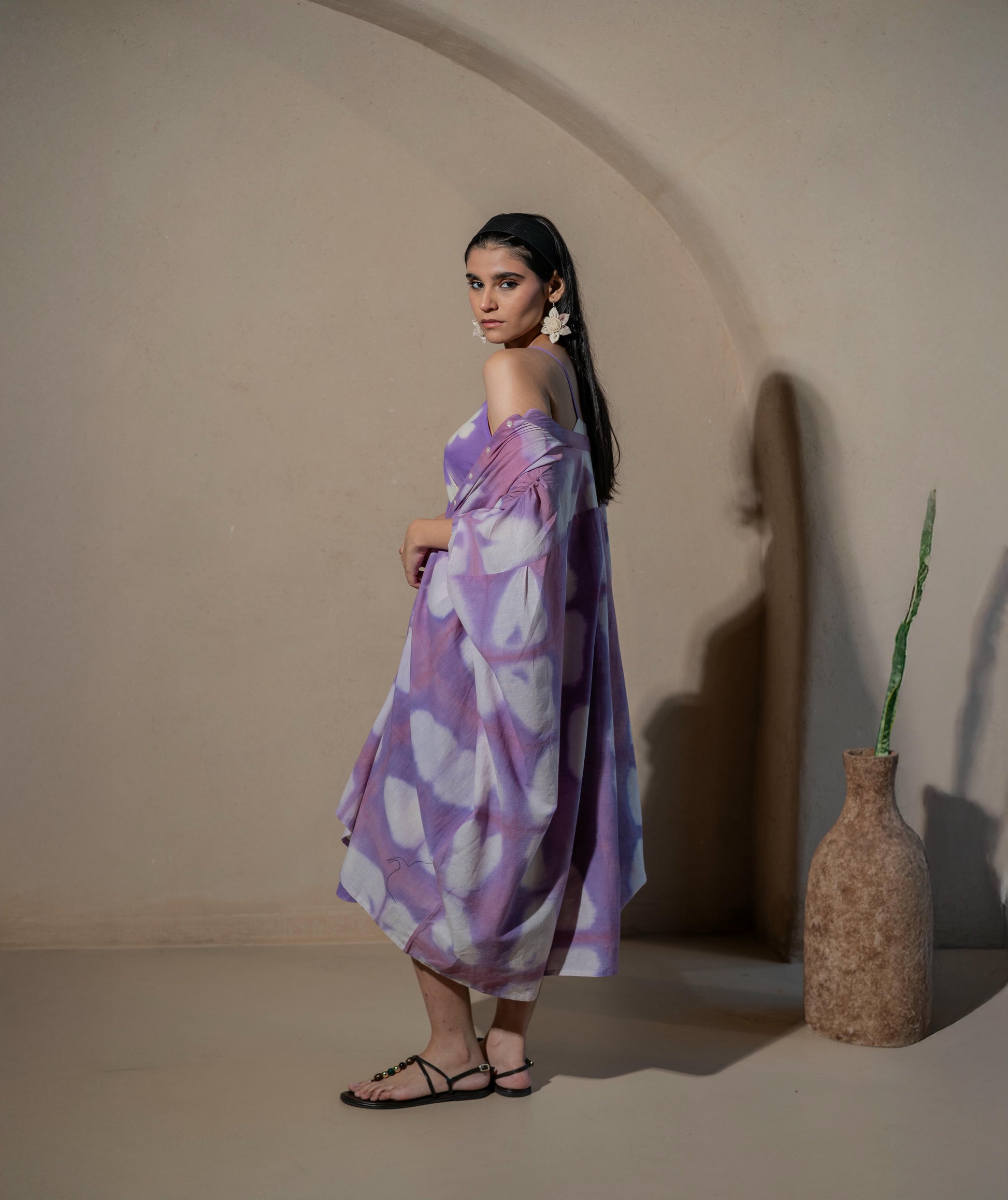 The phool set features symmetric drape dress that creates an instantly flattering silhouette while the included organic cotton overlay adds dimension and styling flexibility.