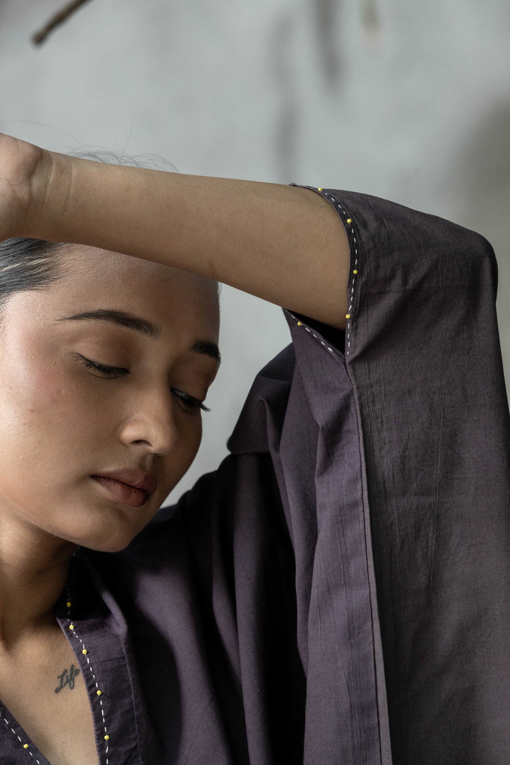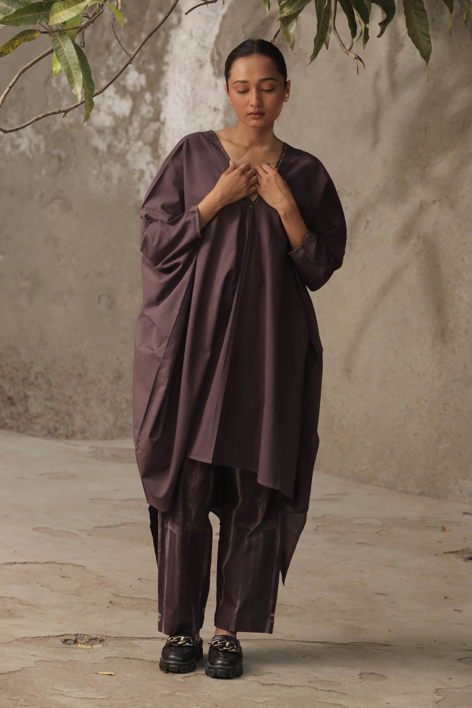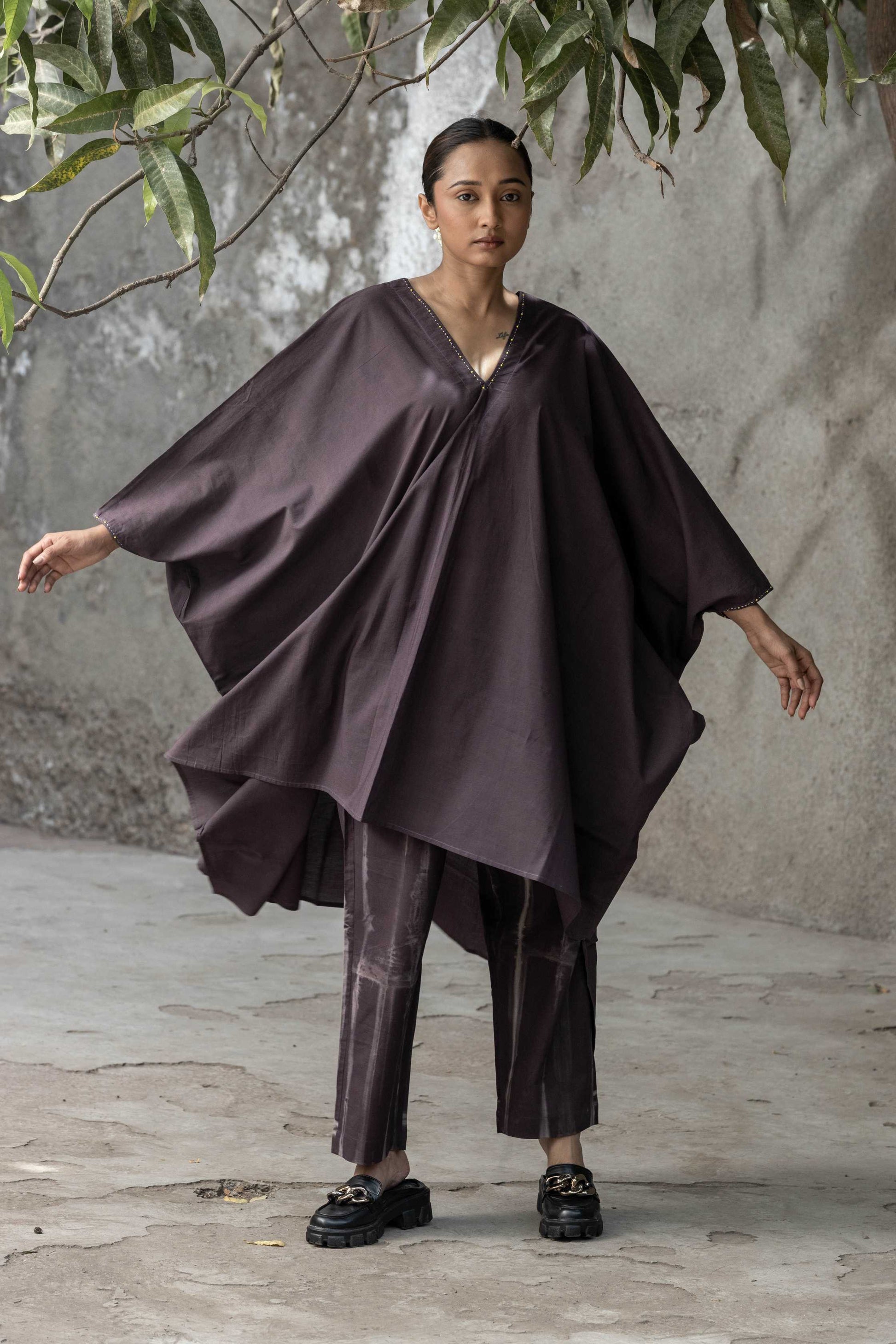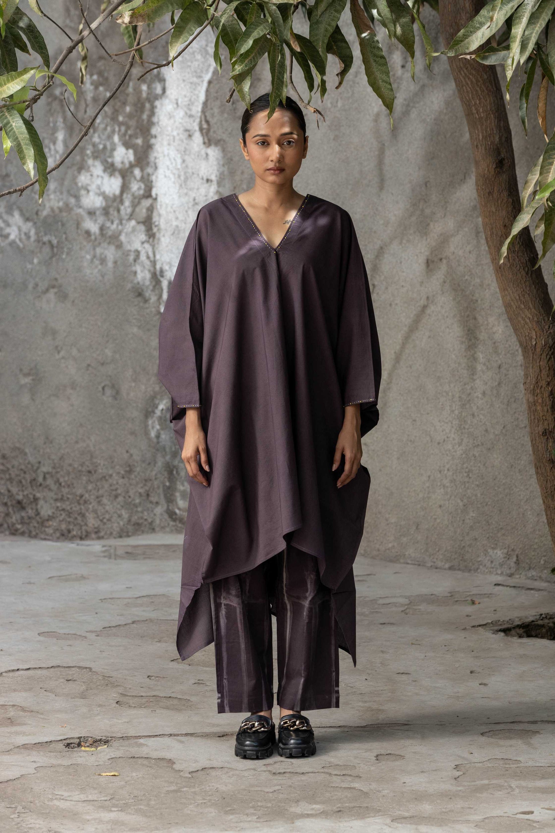 Kaftan falls free on your body representing a very relaxed fit look.