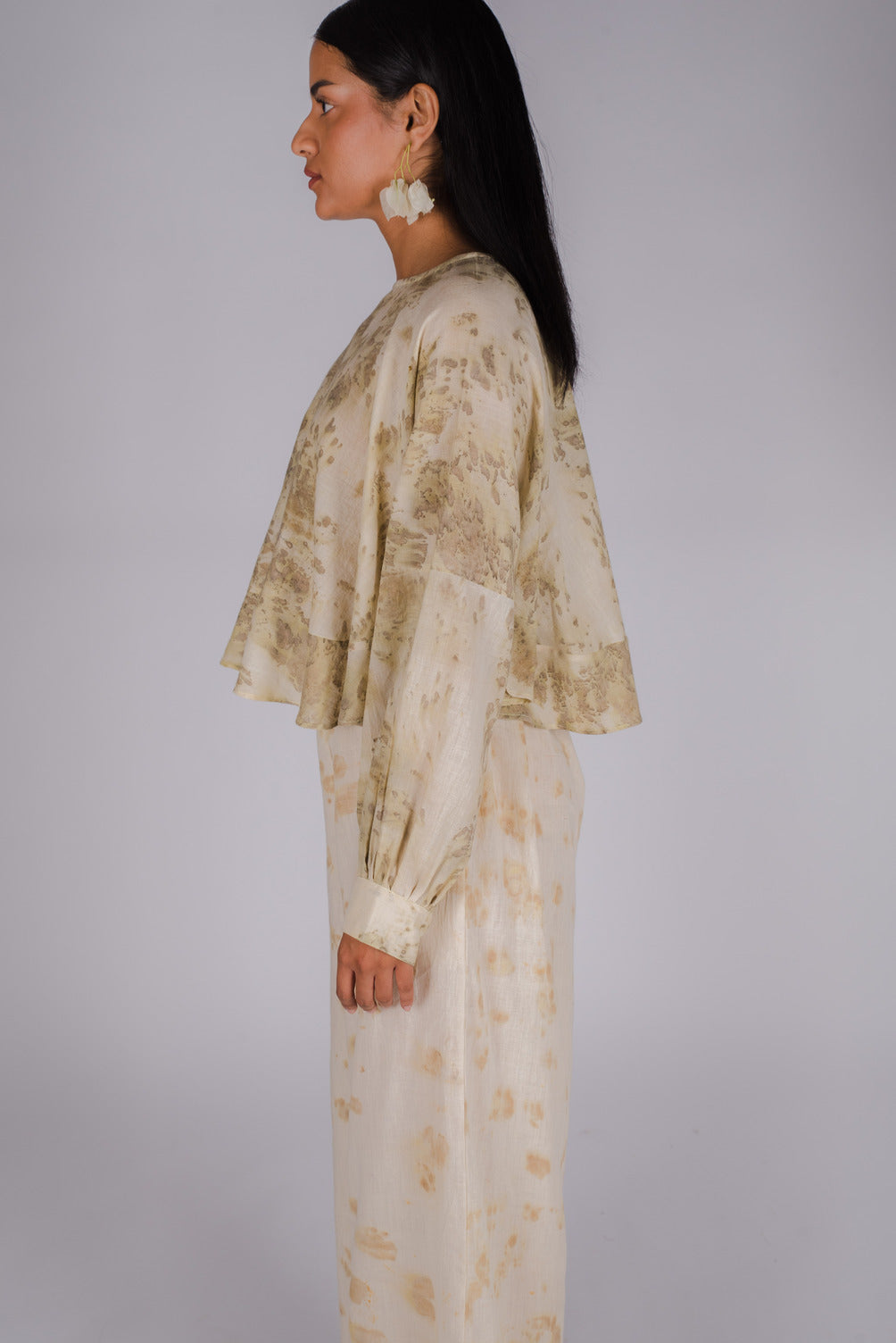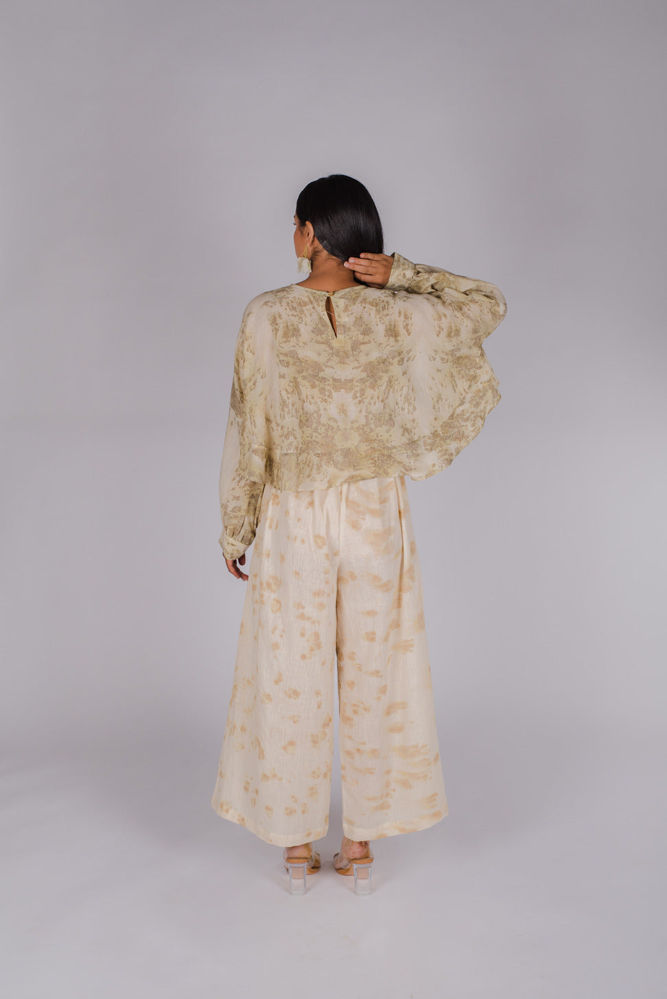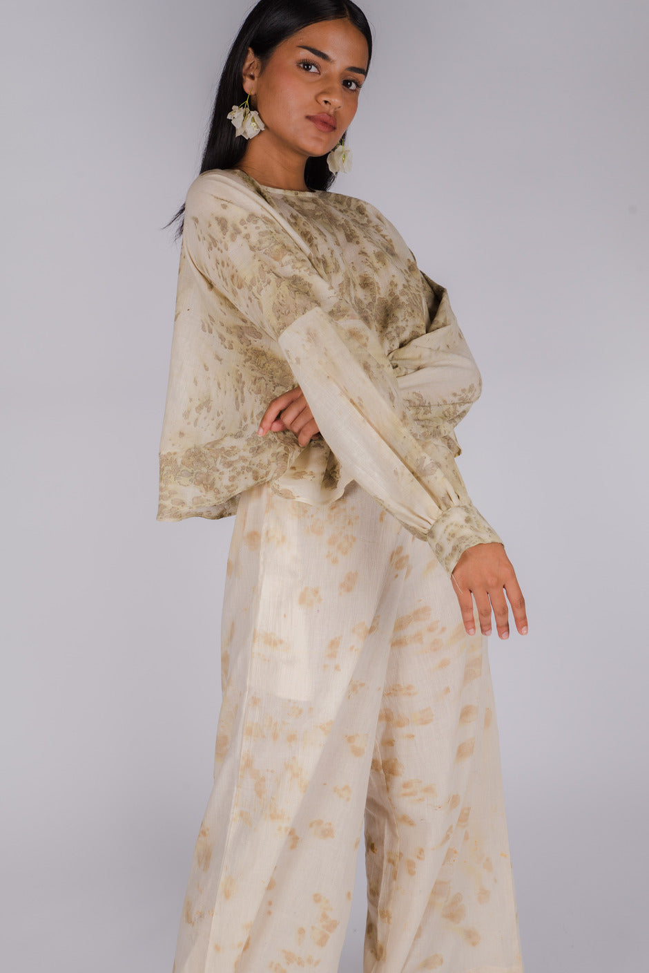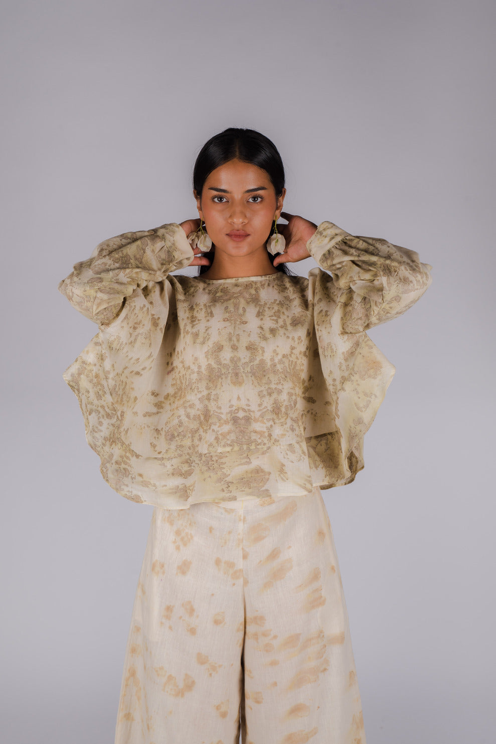 Round neck relaxed fit top Features, direct & gathered sleeves.