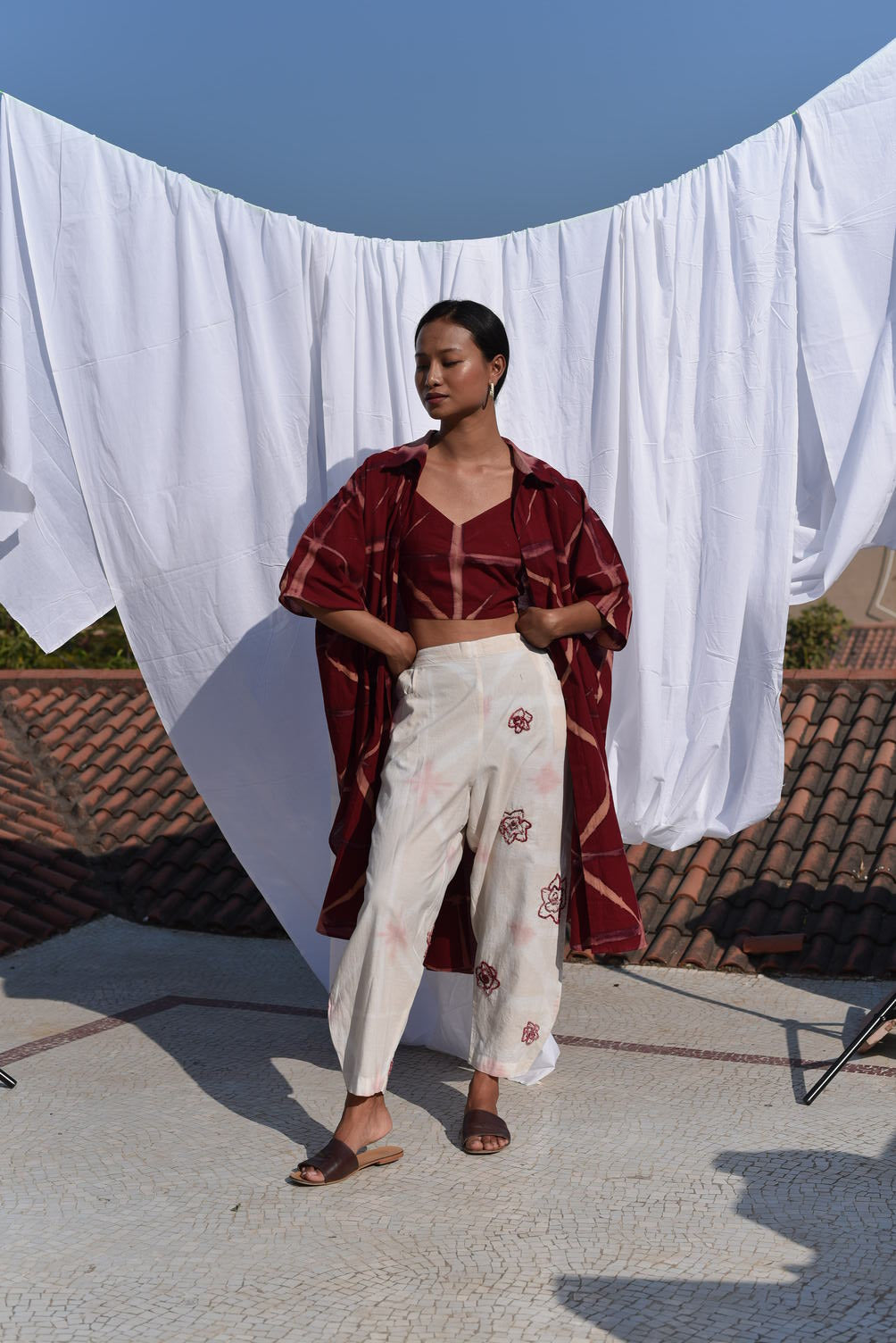 NOTE : Every order is custom made at our dyeing facility. We work with Shibori block resist dyeing techniques and eco-printing. Since both the collections are handmade by our group of artisans the end result may vary from what is shown in the picture.