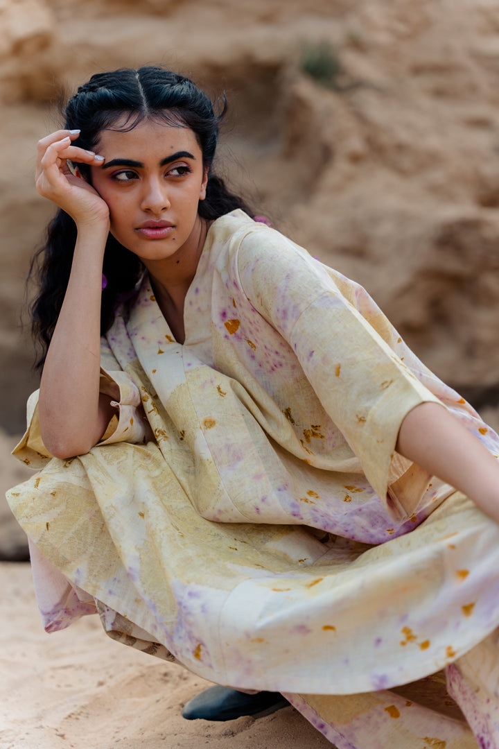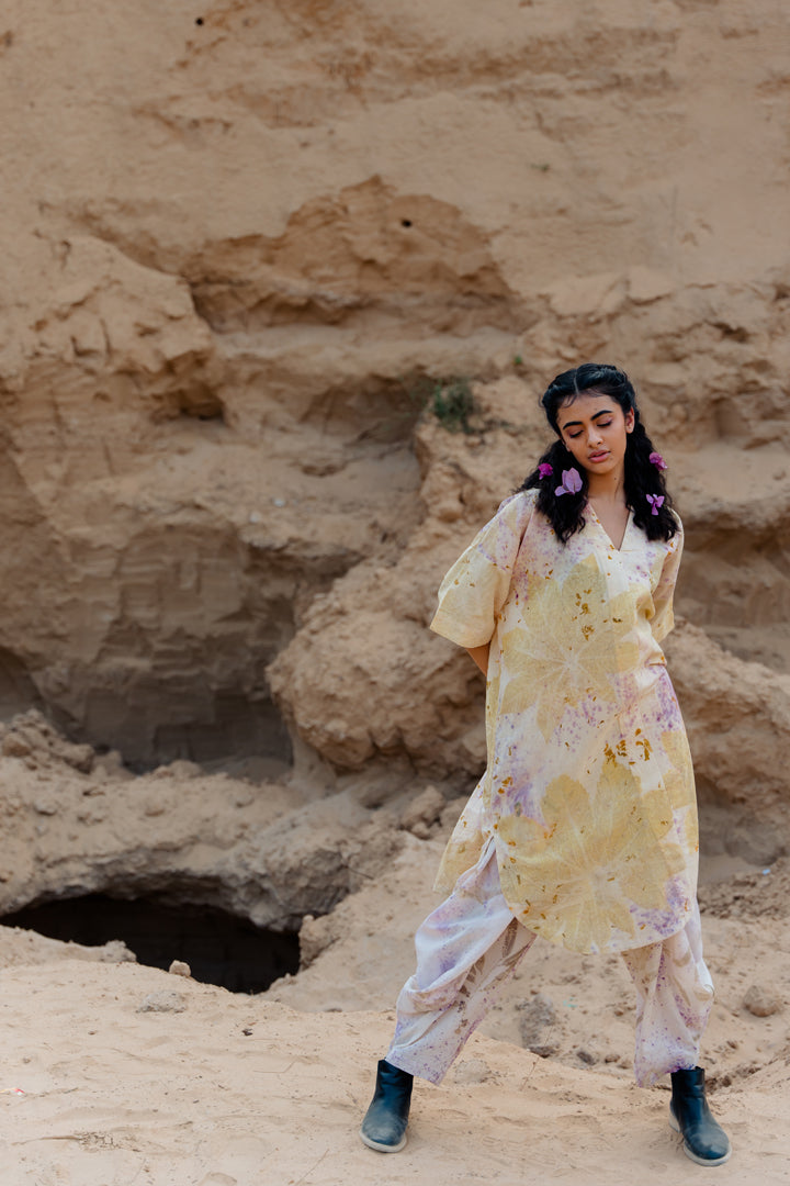 NOTE : Every order is custom made at our dyeing facility. We work with Shibori block resist dyeing techniques and eco-printing. Since both the collections are handmade by our group of artisans the end result may vary from what is shown in the picture.