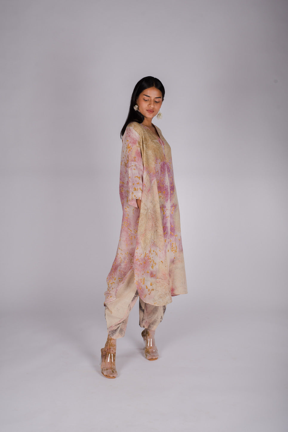 NOTE : Every order is custom made at our dyeing facility. We work with Shibori block resist dyeing techniques and eco-printing. Since both the collections are handmade by our group of artisans the end result may vary from what is shown in the picture.
